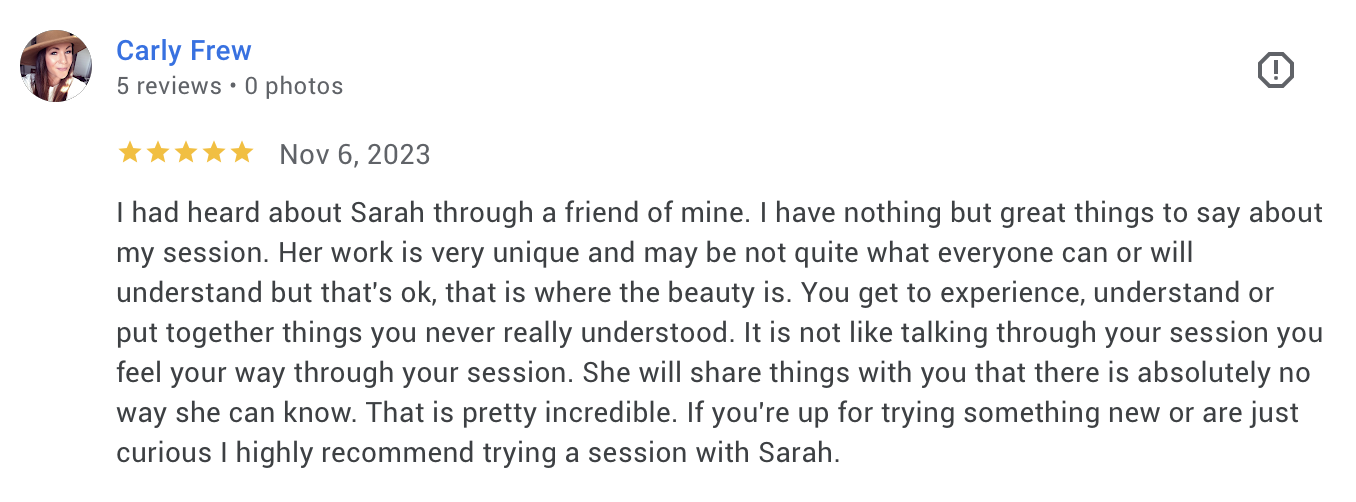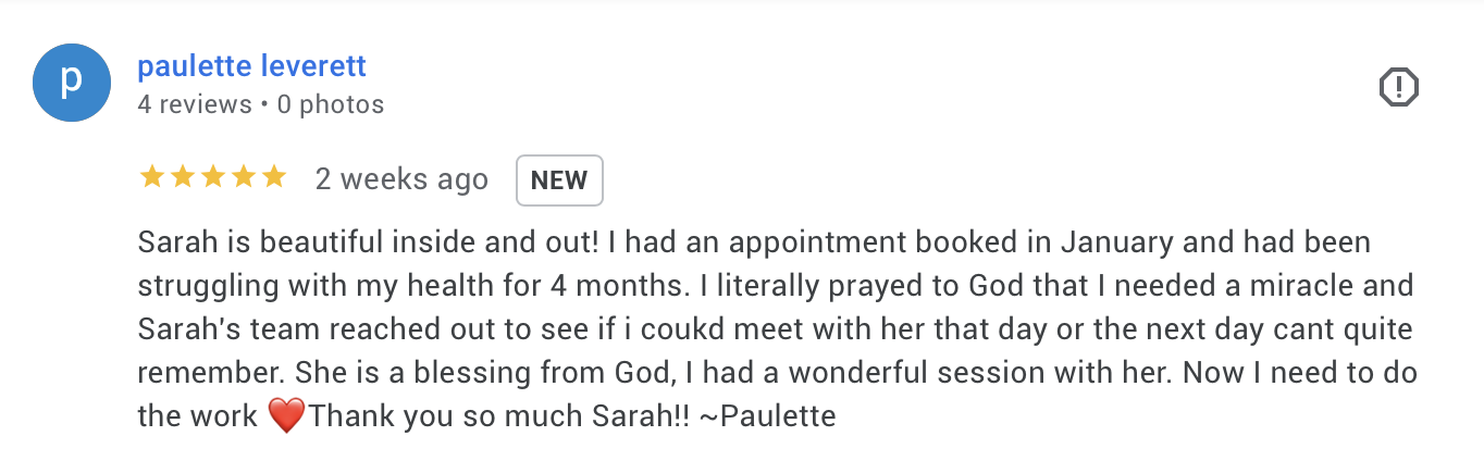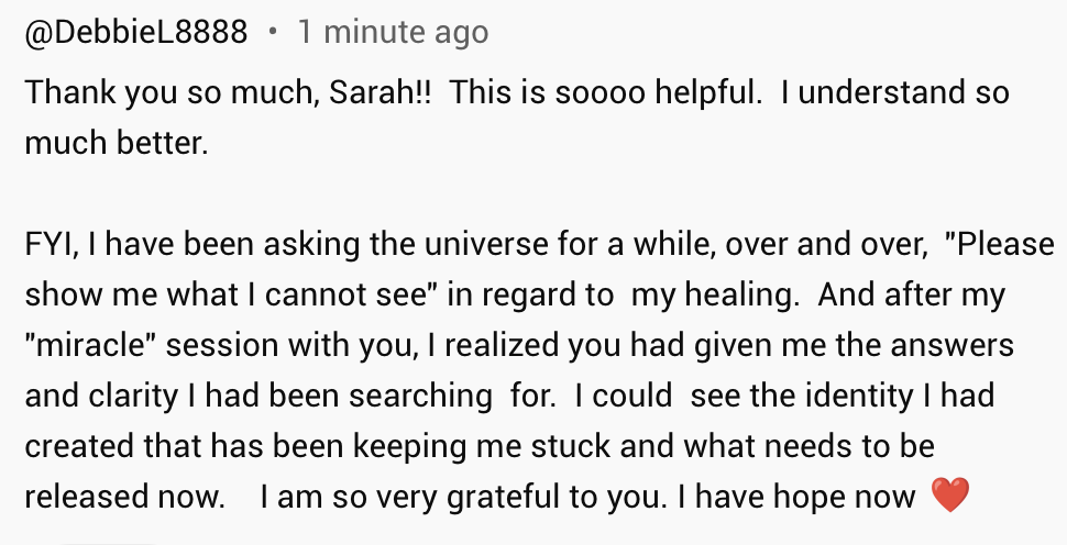 Sarah’s highly refined inner vision, she can see with clarity where energy is blocked, misdirected, or carrying outdated imprints. This allows her to identify the root of symptoms and conditions with precision, often revealing why the body is expressing what it is. From there, healing becomes less about forcing change and more about restoring alignment so the body can respond naturally.